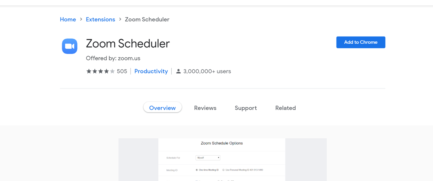 Once the extension is added to Chrome, you can click the zoom icon near the address bar to start and schedule meetings right from a Chrome tab!